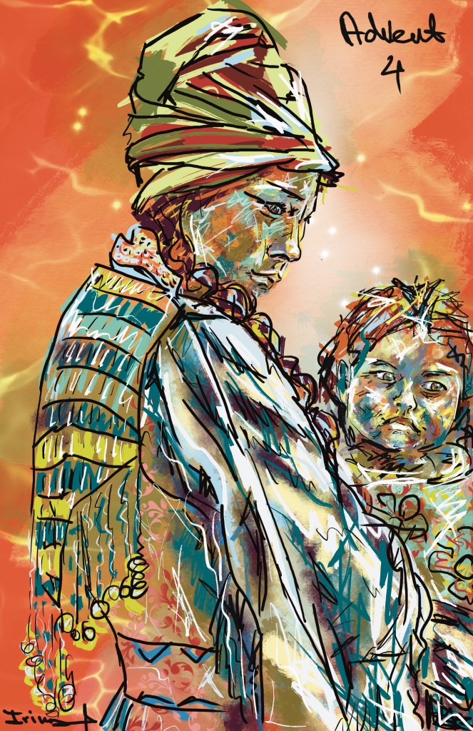 The news found the families in diametrically opposite situations. First there was Elizabeth, an older woman born to a priestly line and married to a priest in the still functioning Jerusalem Temple. 70 years later it would be gone, but in Jesus’ time, each week, one of 8,000 priests was chosen randomly to burn incense inside its sanctuary. Given these odds, each would do this once or twice in a lifetime, so it was a special day and place for Zechariah when this happened: he heard the angel announce to him that despite their age, his wife would become pregnant for the first time. Several OT stories come to mind: previously barren women, suddenly able to conceive, each time ushering in a new turn in the history of Israel. So Elizabeth is said to have viewed this as a favor, though I wonder if in his response to the angel, Zechariah voiced a mutually held concern. Carrying a baby to term, nursing it through the sleepless nights, chasing a toddler, and dealing with a teen would be less than ideal in the last decades of one’s life! And the poignancy of never seeing the baby grow into adulthood on top of that. It was probably contemplating all this that left Zechariah literally speechless until the birth of his baby John (the Baptist!).